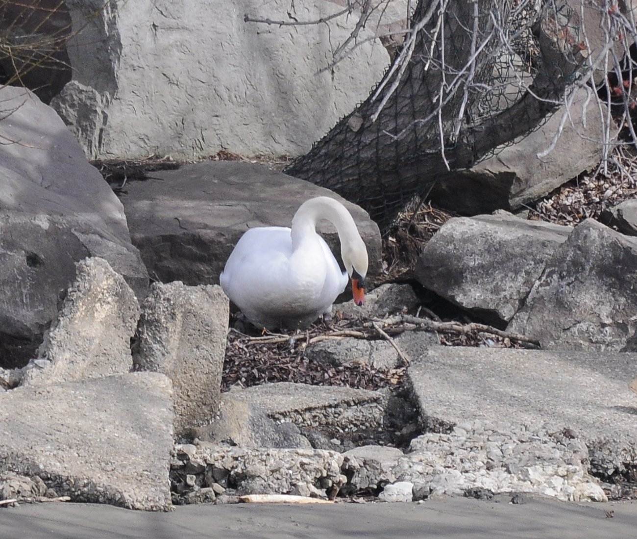 Mute swan, perhaps building a nest.